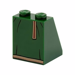 Деталь Lego 3678bpb059 Slope 65 2 x 2 x 2 with Bottom Tube with Minifigure Dress / Skirt / Robe, Black Lines, Brown Hemline and Belt Pattern