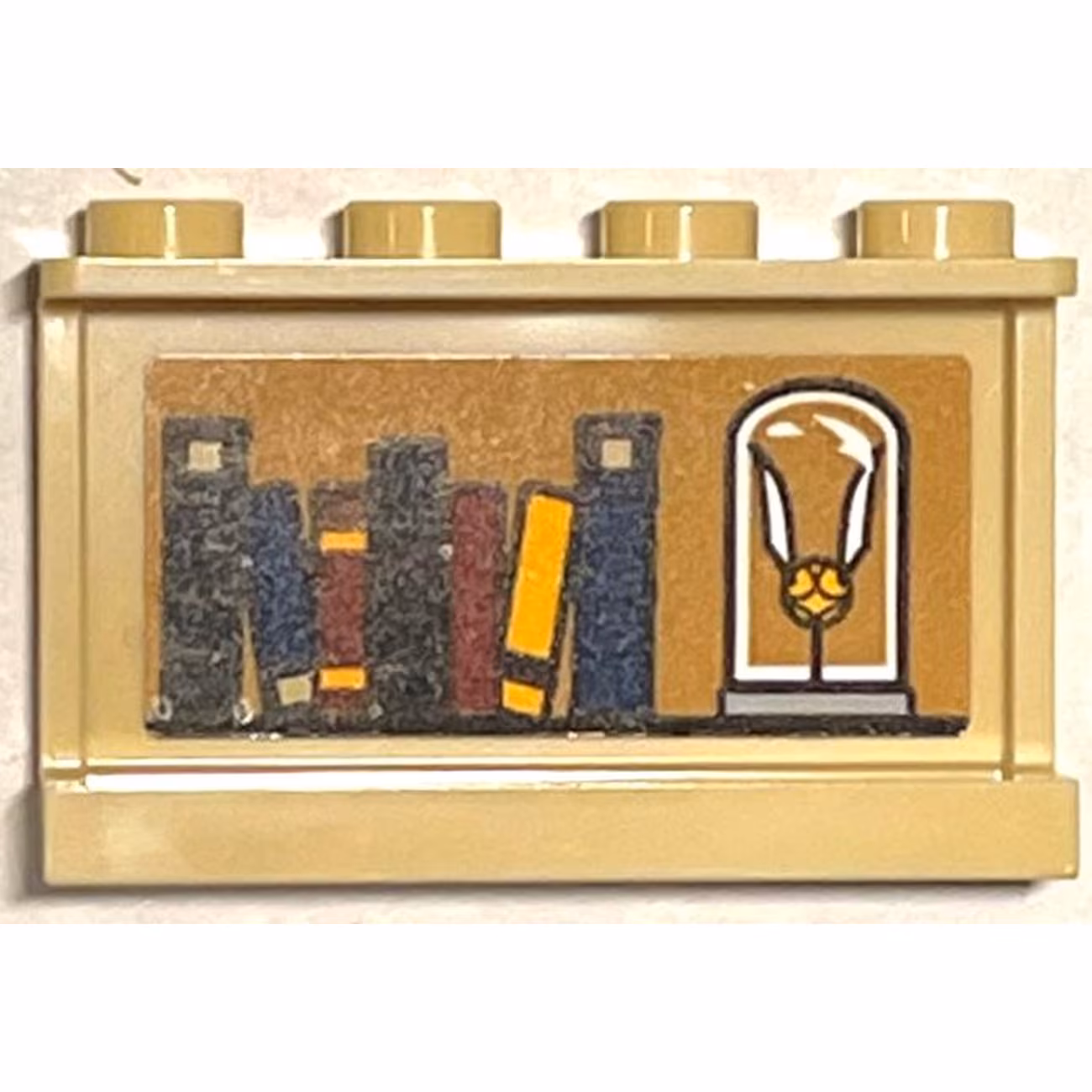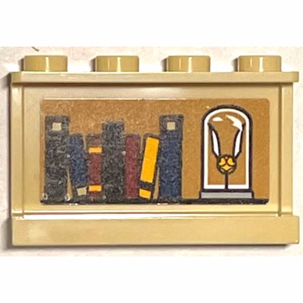 Деталь Lego 14718pb054 Panel 1 x 4 x 2 with Side Supports – Hollow Studs with Books and Golden Snitch in Glass Container on Medium Nougat Background Pattern (Sticker) – Set 76399