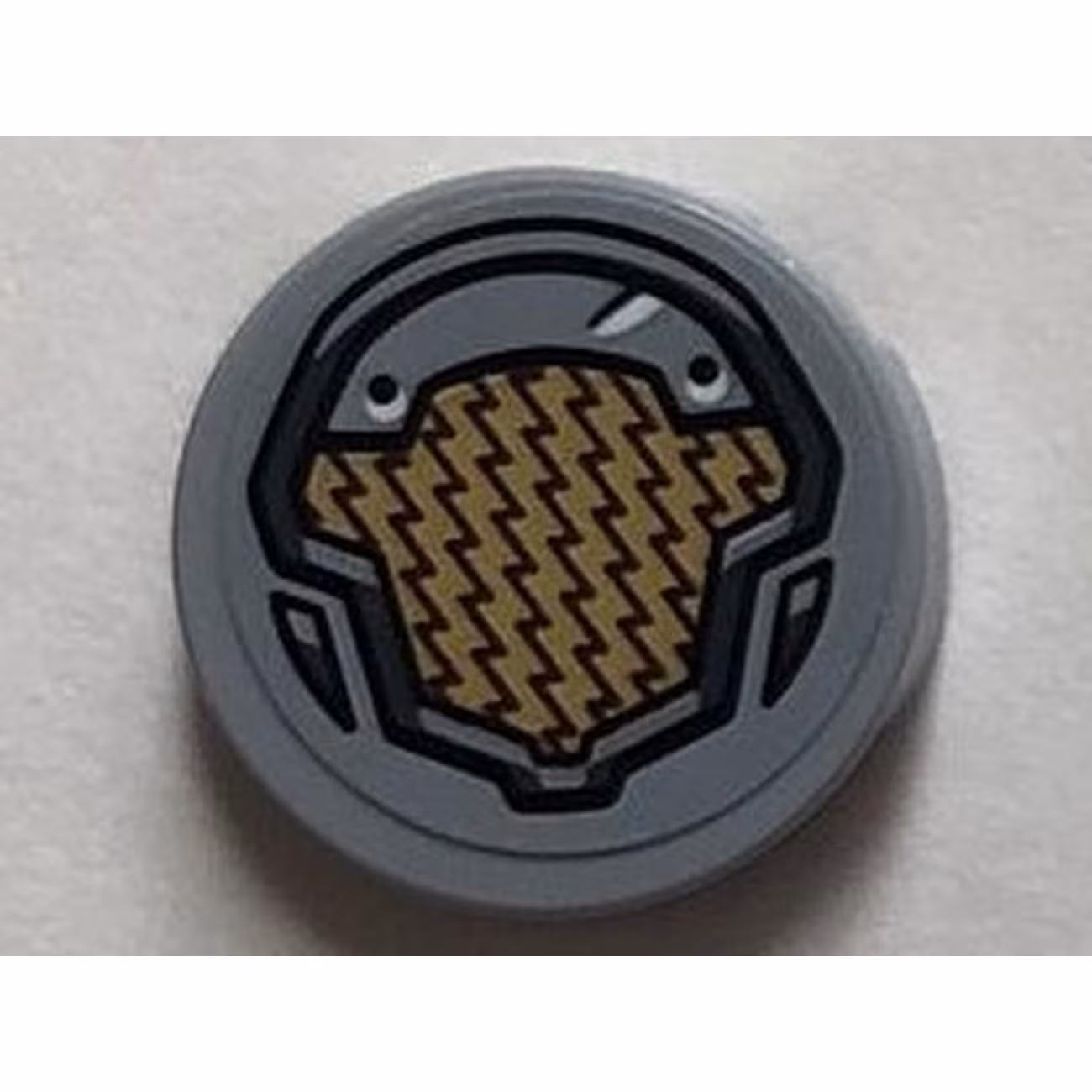 Деталь Lego 14769pb240 Tile, Round 2 x 2 with Bottom Stud Holder with Gold and Light Bluish Gray Panel Pattern (Sticker) – Set 76099