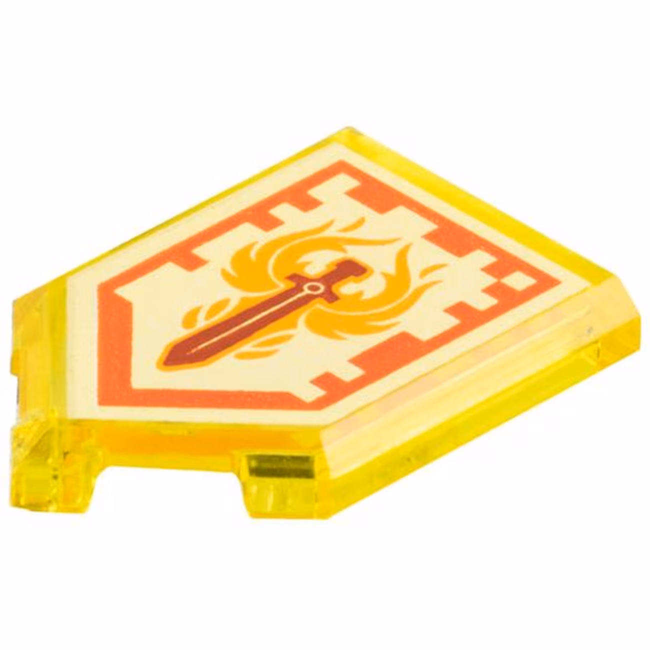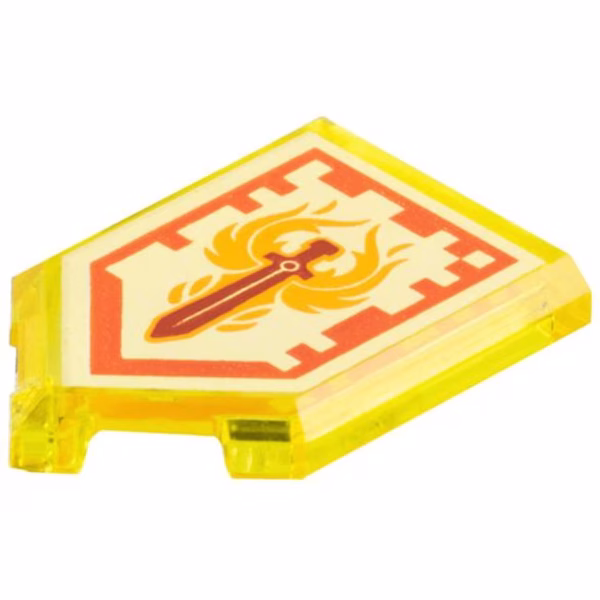 Деталь Lego 22385pb011 Tile, Modified 2 x 3 Pentagonal with Nexo Power Shield Pattern – Phoenix Blaze