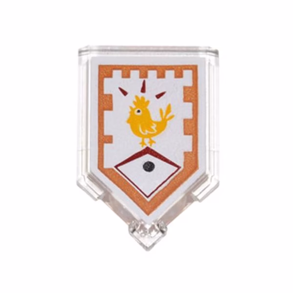 Деталь Lego 22385pb014 Tile, Modified 2 x 3 Pentagonal with Nexo Power Shield Pattern – Chicken Power