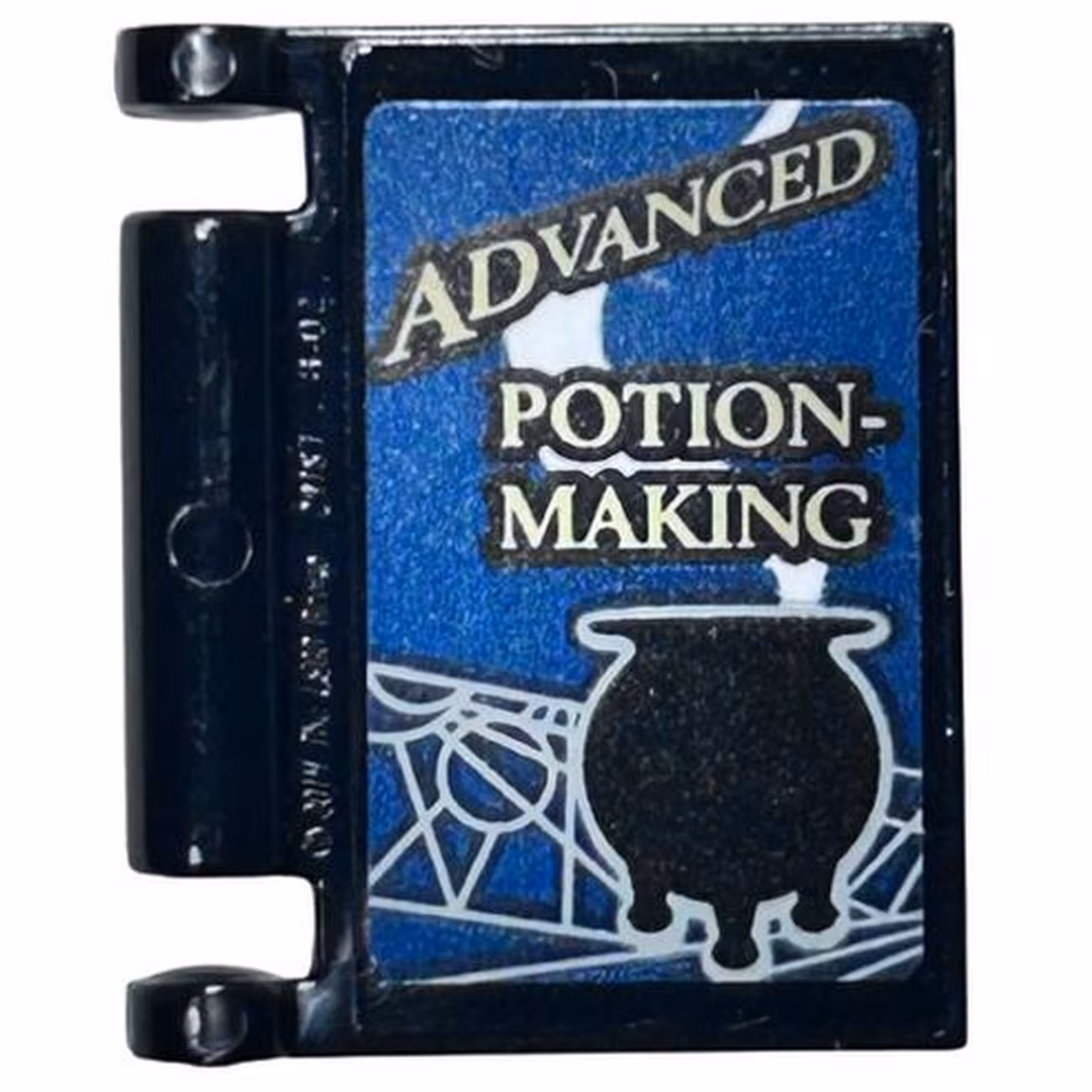 Деталь Lego 24093pb050 Minifigure, Utensil Book Cover with ‘ADVANCED POTION-MAKING’ and Black Smoking Cauldron on Dark Blue Background Pattern (Sticker) – Set 76399