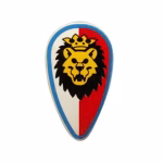 Деталь Lego 2586p4d Minifigure, Shield Ovoid with Lion Head, Red and White Background, Blue Border Pattern