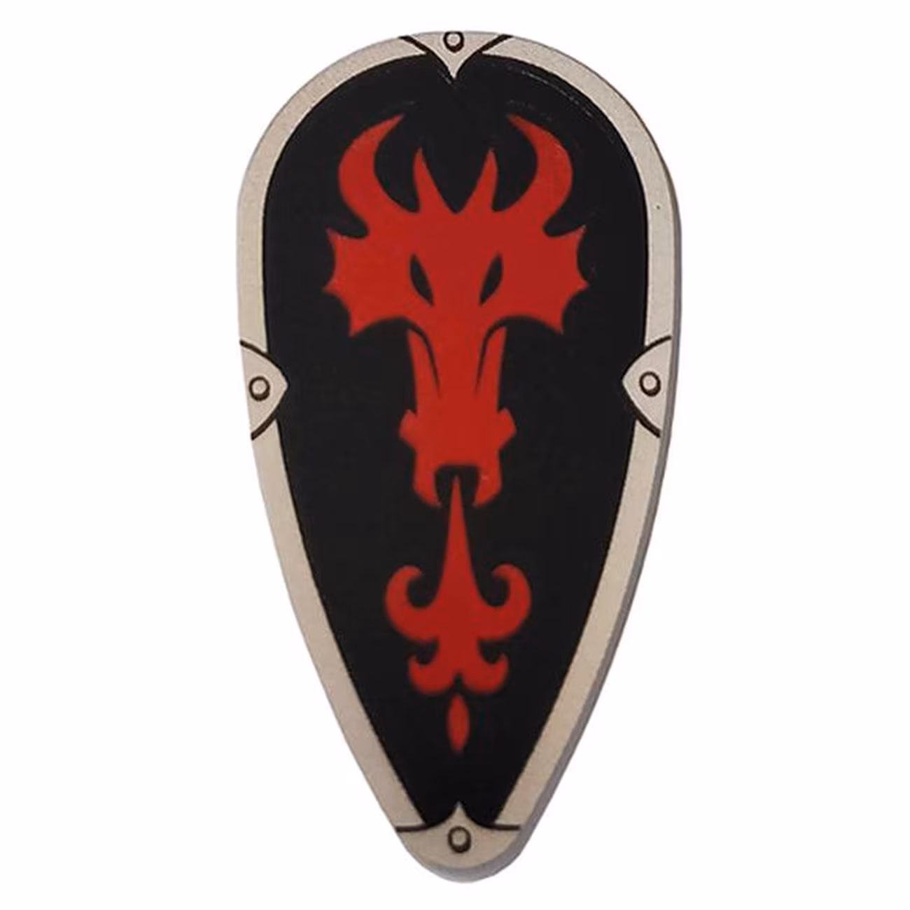 Деталь Lego 2586pb007 Minifigure, Shield Ovoid with Red Fire Breathing Dragon Head on Black Background Pattern