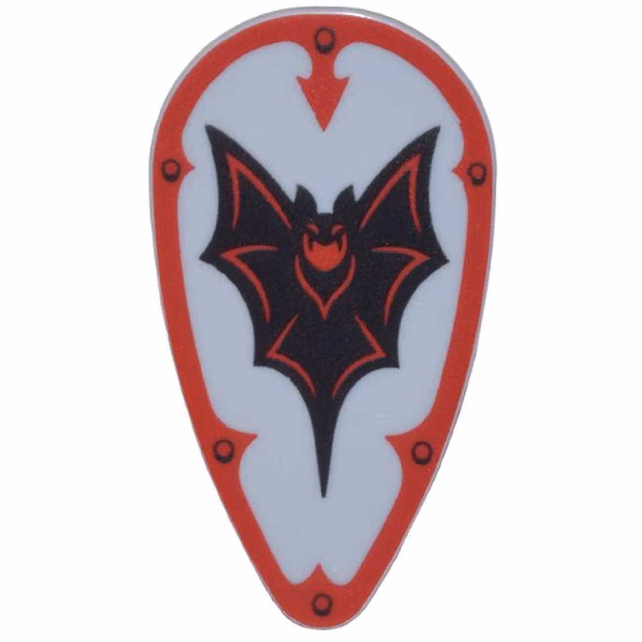 Деталь Lego 2586pb011 Minifigure, Shield Ovoid with Black and Red Bat and Border with Arrow and Rivets Pattern