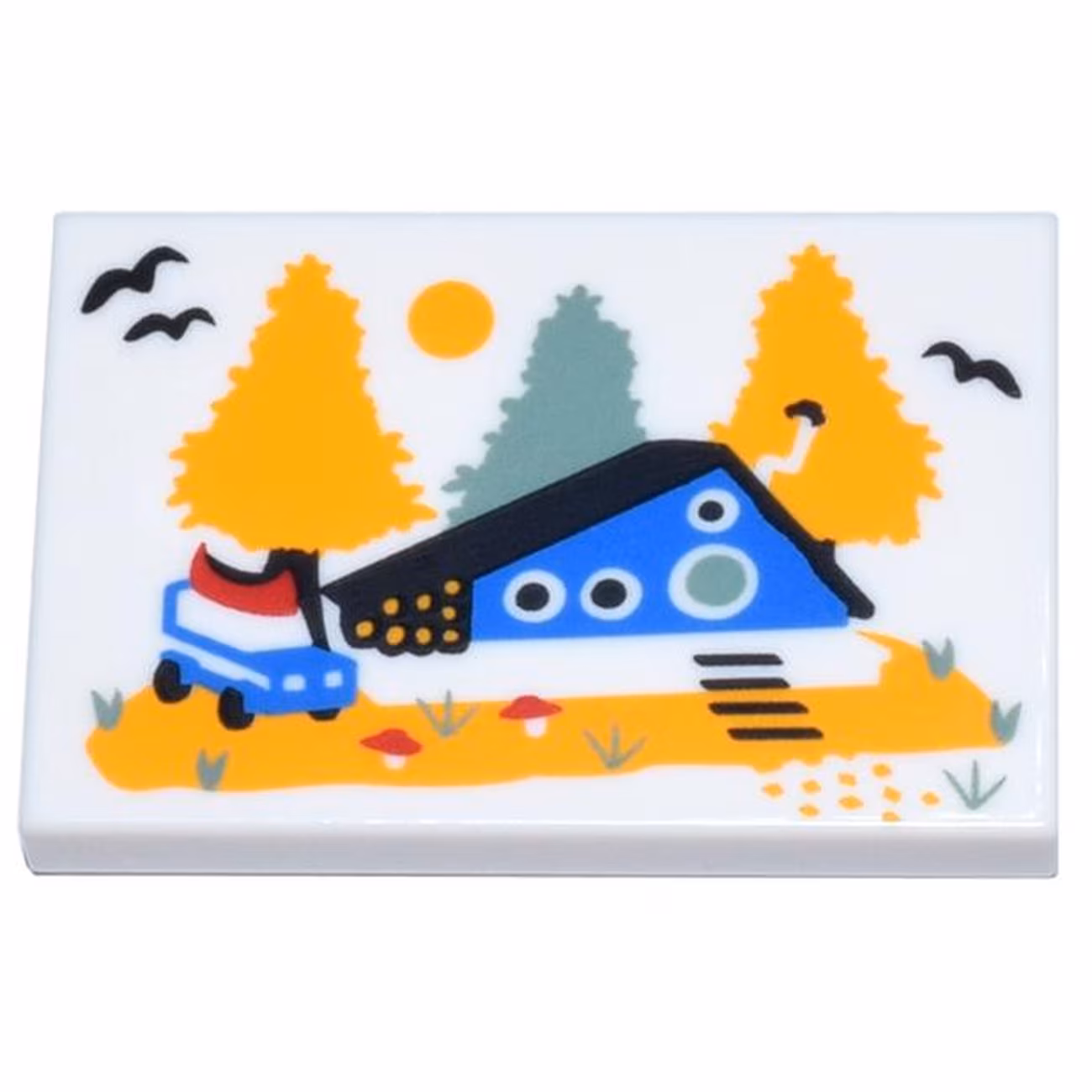 Деталь Lego 26603pb319 Tile 2 x 3 with Blue Cabin with Round Door and Windows, Bright Light Orange and Sand Green Trees Pattern