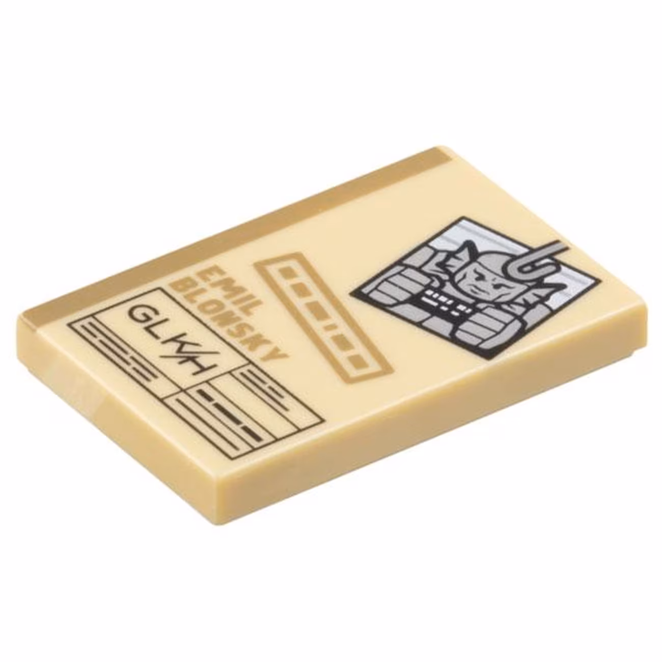 Деталь Lego 26603pb354 Tile 2 x 3 with Legal File with Dark Tan ‘EMIL BLONSKY’, Black ‘GLK/H’ and Minifigure Mugshot Pattern