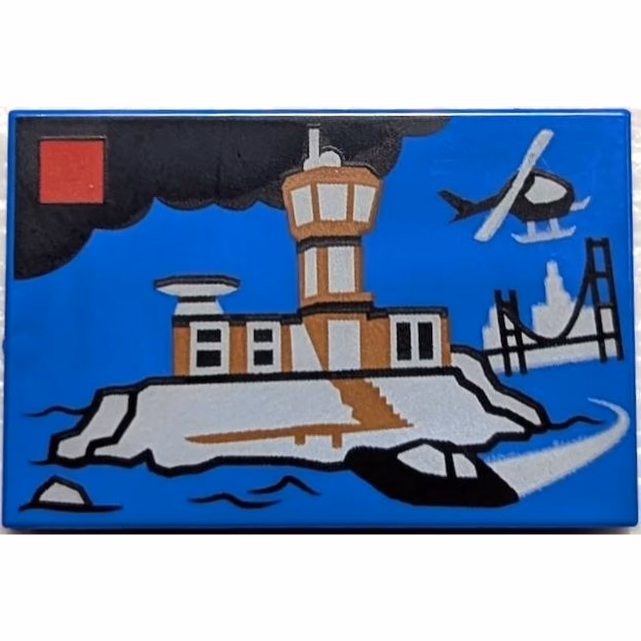 Деталь Lego 26603pb437 Tile 2 x 3 with LEGO City Set 60419 Police Prison Island Box Art Pattern