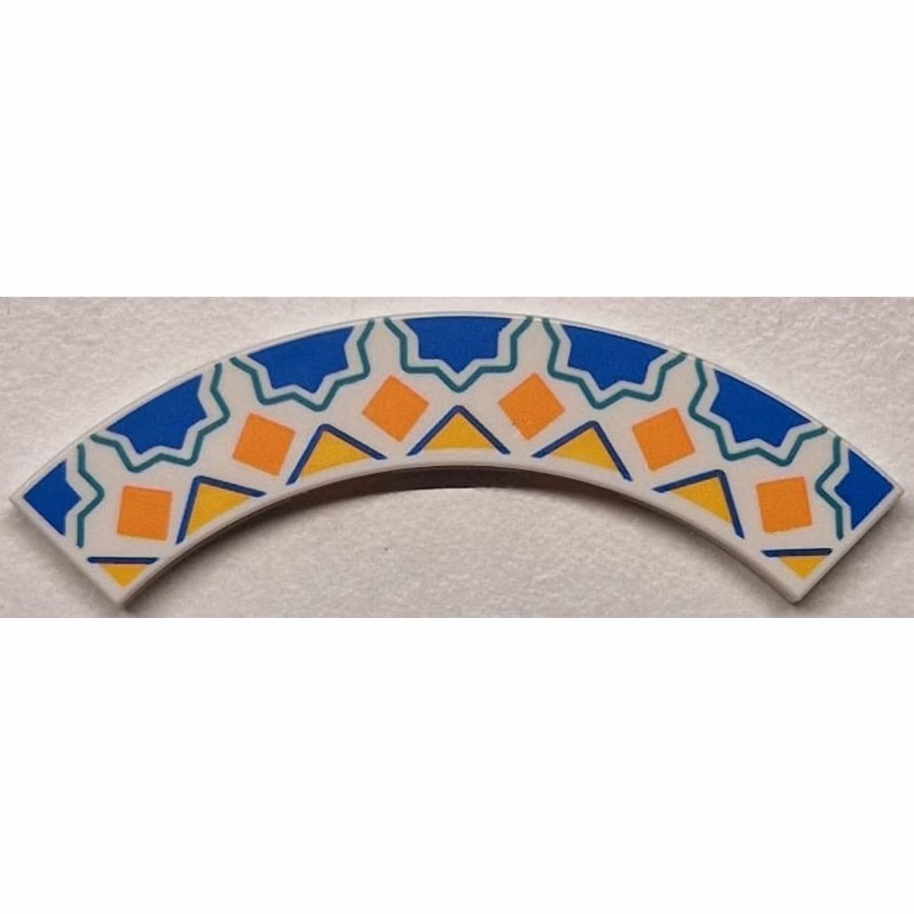 Деталь Lego 27507pb17 Tile, Round Corner 4 x 4 Macaroni with Blue Half Stars with Dark Turquoise Outlines, Orange Squares and Bright Light Orange Triangles Pattern