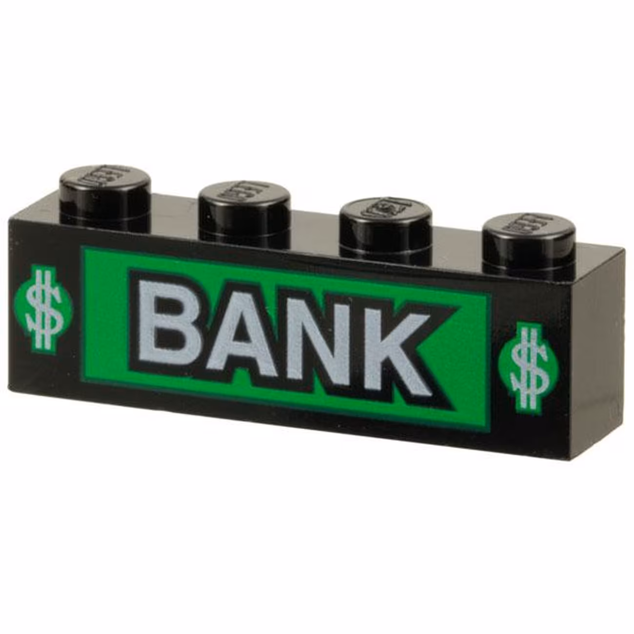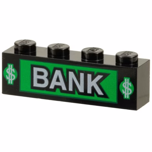Деталь Lego 3010pb016 Brick 1 x 4 with Bank and Dollar Signs Pattern