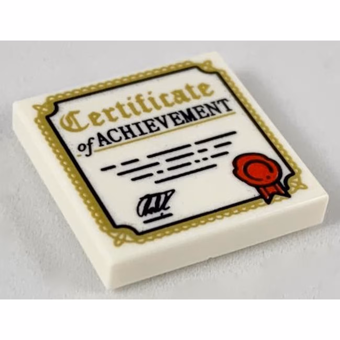 Деталь Lego 3068pb1209 Tile 2 x 2 with ‘Certificate of ACHIEVEMENT’, Gold Border, Red Ribbon Pattern
