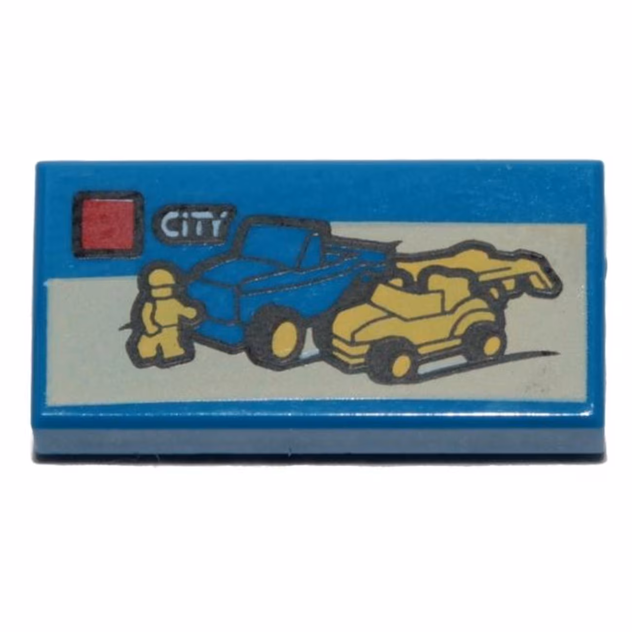 Деталь Lego 3069pb0387 Tile 1 x 2 with Lego Dune Buggy Transporter and ‘CITY’ Set Box Pattern