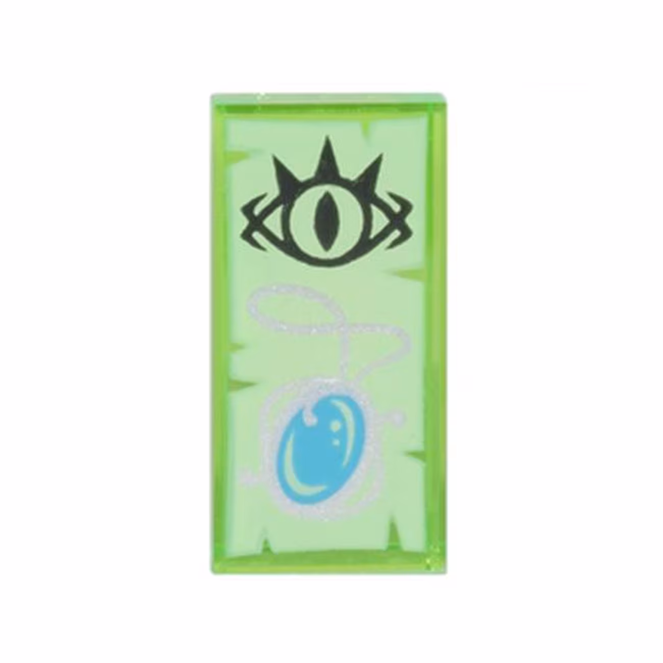 Деталь Lego 3069pb0556 Tile 1 x 2 with Goblin Eye and Medium Azure Amulet on Yellowish Green Parchment Background Pattern