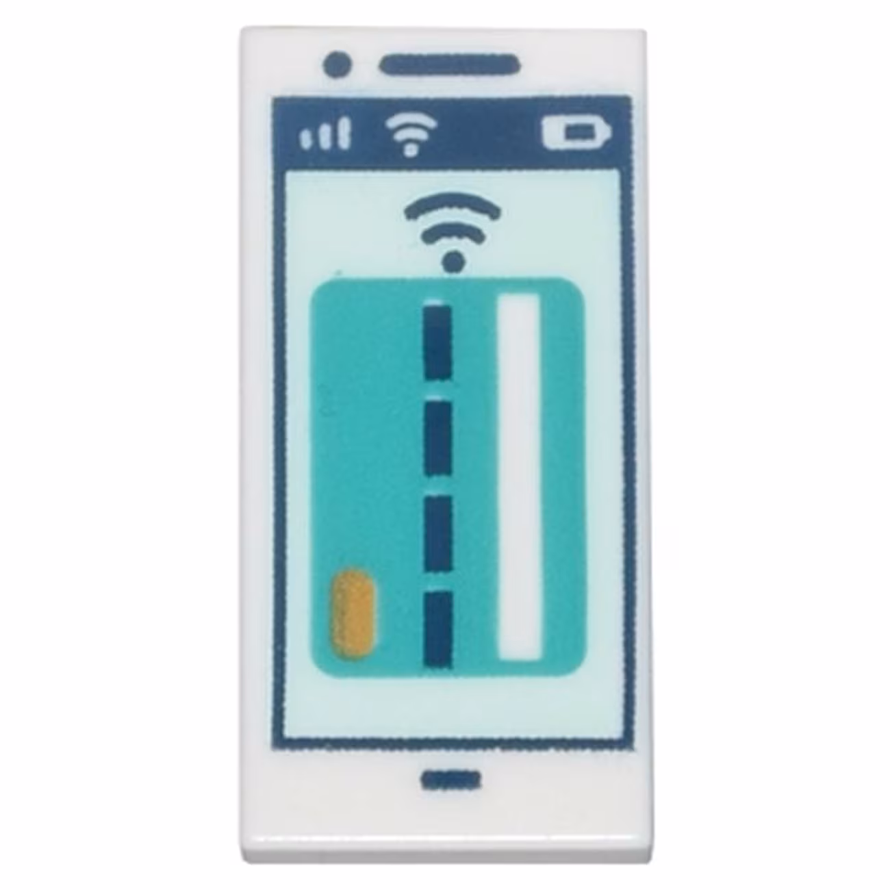 Деталь Lego 3069pb1062 Tile 1 x 2 with Cell Phone / Smartphone with Dark Turquoise Debit / Credit Card and Dark Blue Signal Strength on Light Aqua Screen Pattern