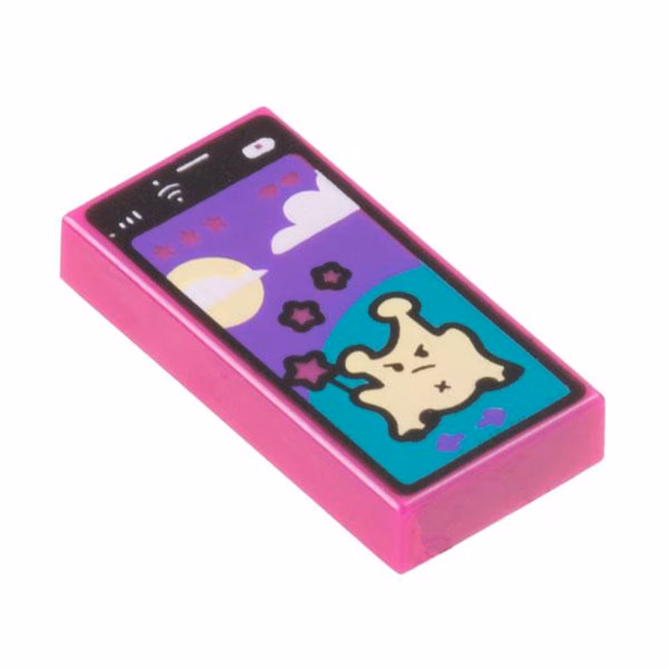 Купить Деталь Lego 3069pb1067 Tile 1 x 2 with Cell Phone / Smartphone with Game with Bright Light Yellow Alien on Dark Turquoise Hill, Sun, Clouds, and Dark Purple Sky Pattern с быстрой доставкой по всей России. Категория детали: Tile, Decorated. Цвет детали: Magenta. В нашем интернет магазине вы найдете детали Лего пошутчно в большом количестве. Все детали Lego оригинальные.