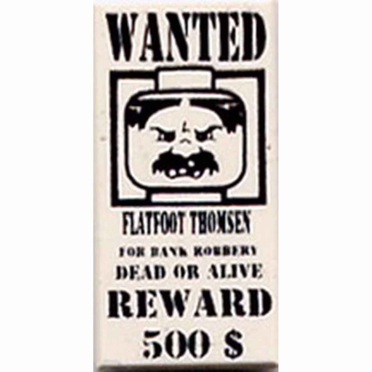 Деталь Lego 3069px37 Tile 1 x 2 with ‘WANTED’ 500 Reward Poster Pattern