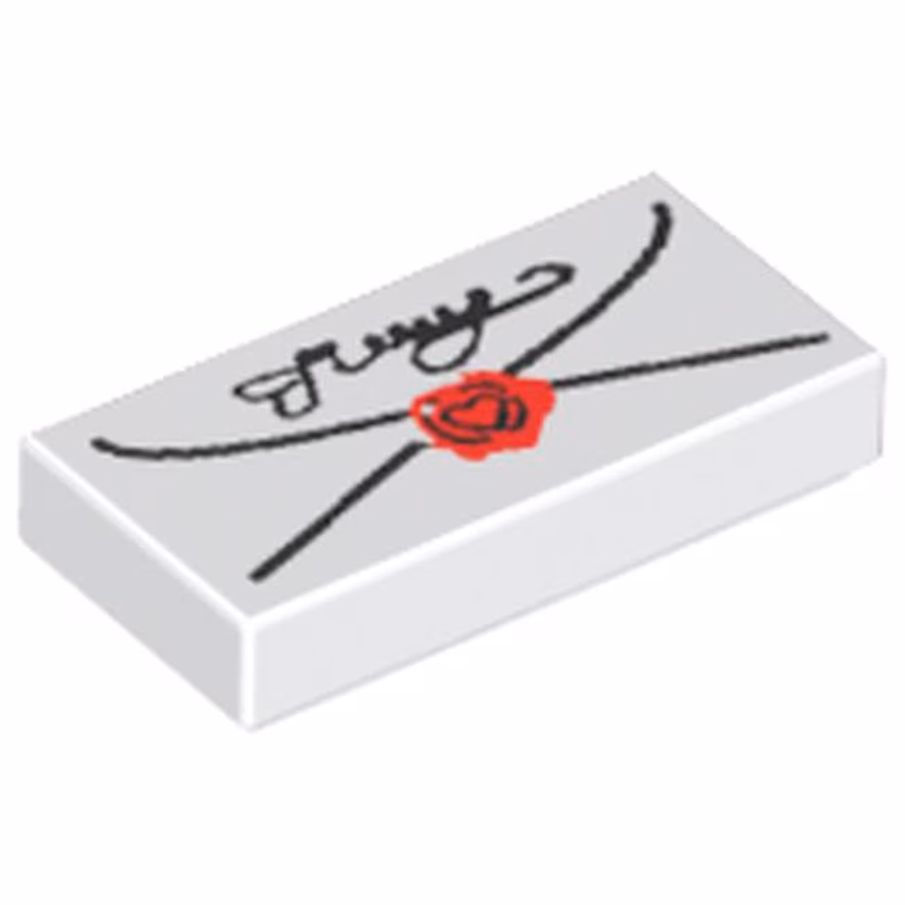 Деталь Lego 3069px40 Tile 1 x 2 with Envelope with Red Wax Seal and Black Script Pattern