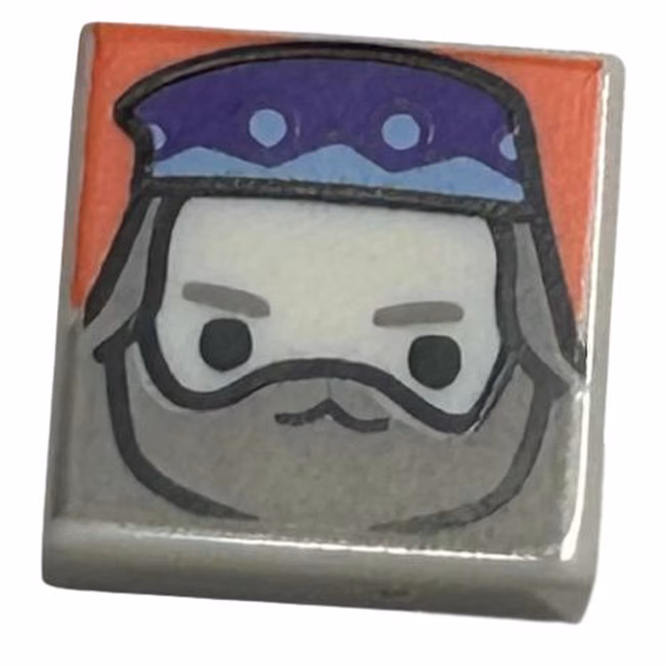 Деталь Lego 3070pb303 Tile 1 x 1 with Male Wizard Head with Dark Purple Hat, Light Bluish Gray Beard and Long Hair on Coral Background Pattern (HP Albus Dumbledore)