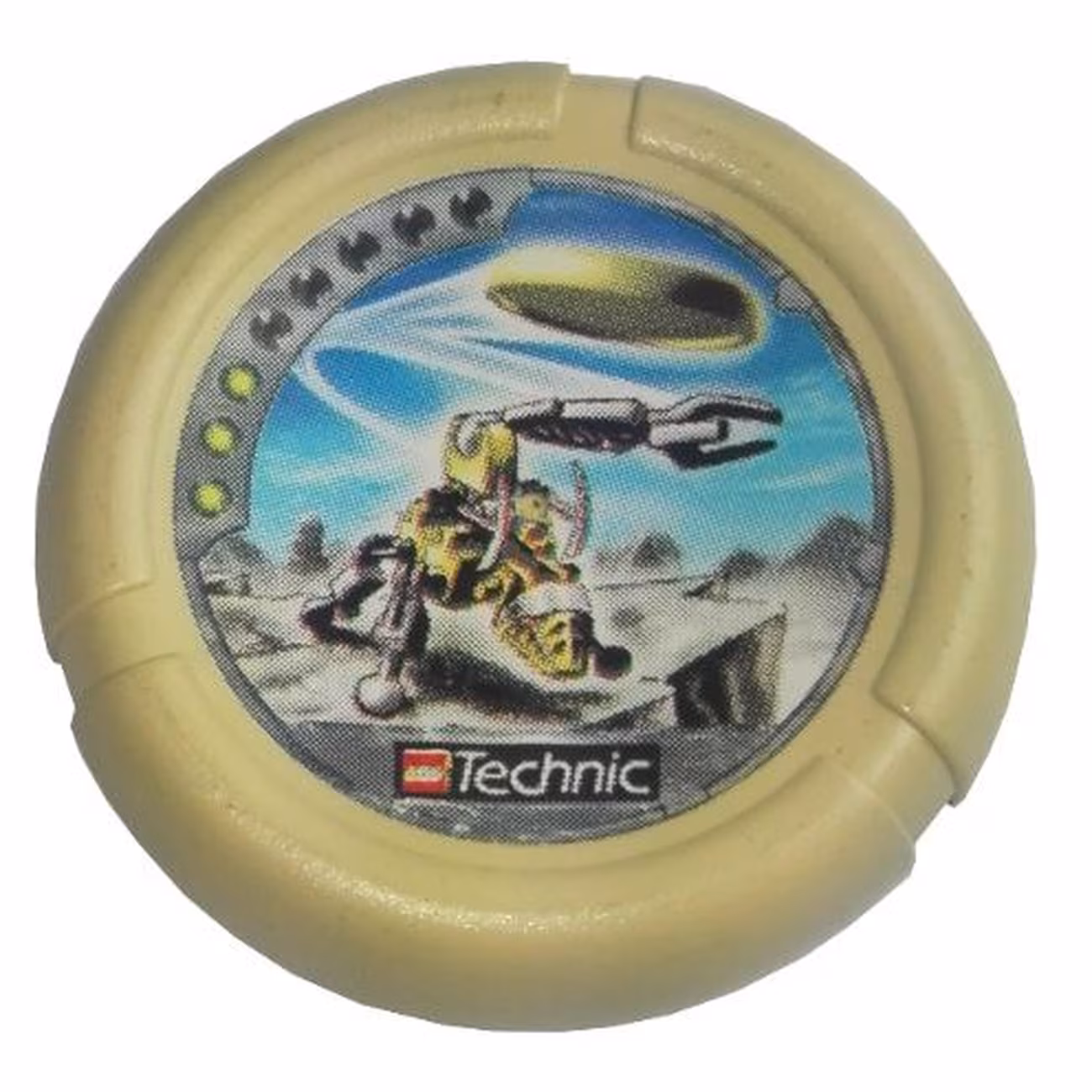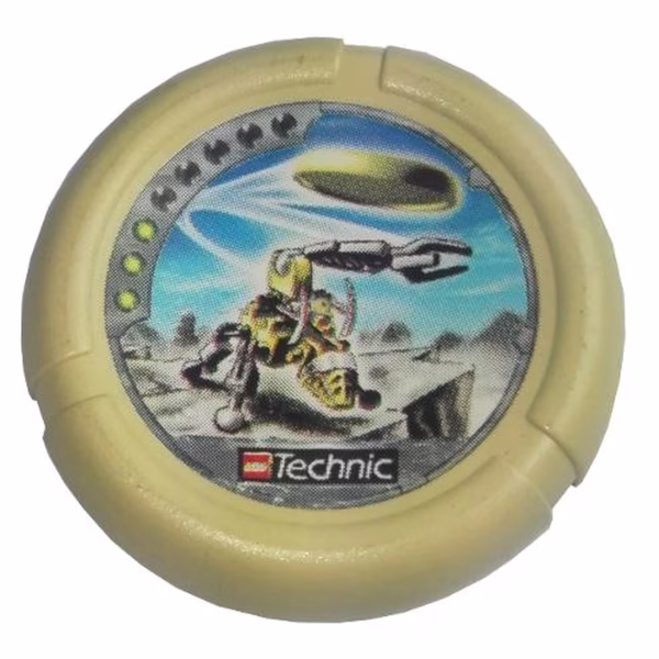 Деталь Lego 32171pb044 Throwing Disk with Throwbot Granite / Slizer Rock 3 Pips, LEGO Technic Logo, and Robot Throwing Disk Pattern