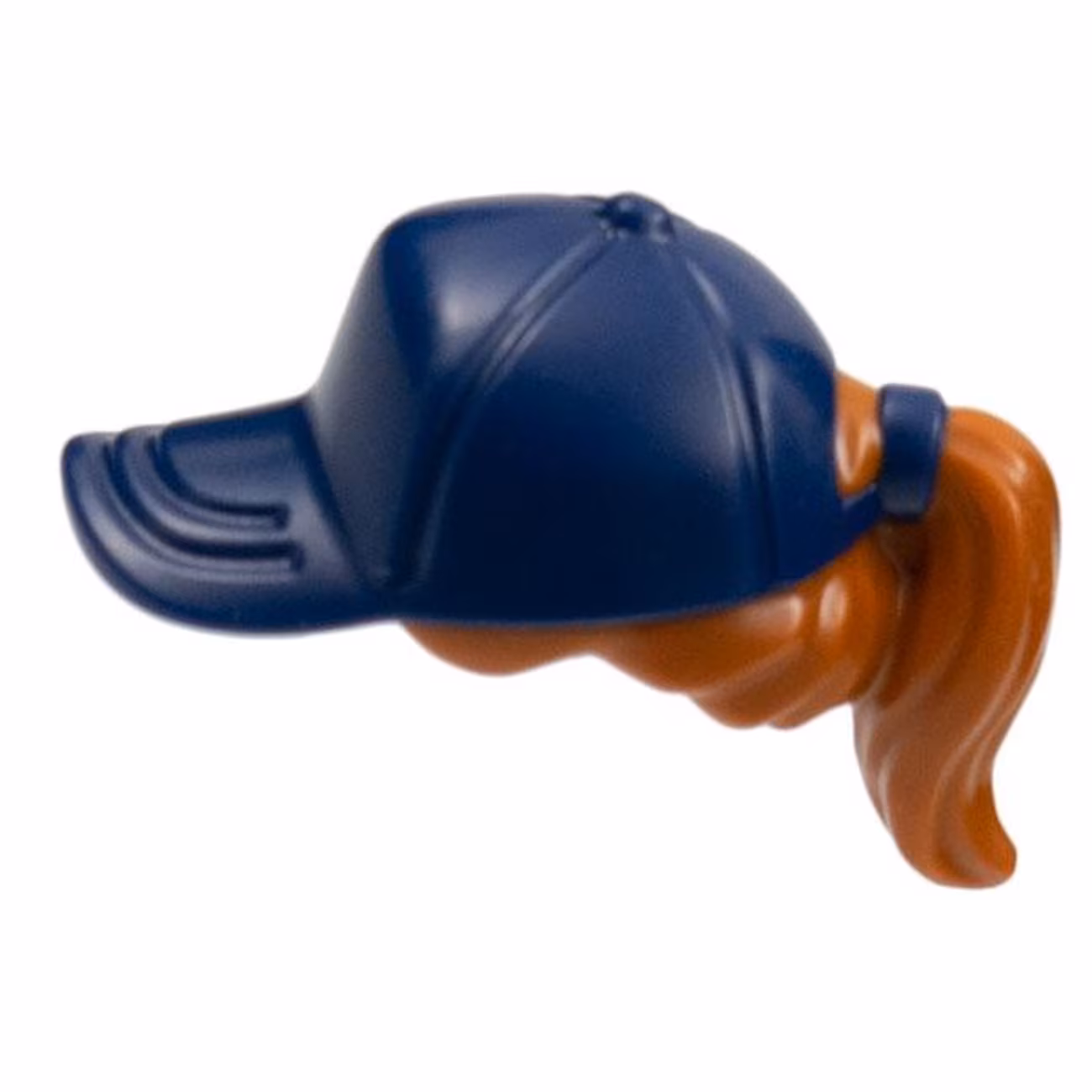 Деталь Lego 35660pb02 Minifigure, Hair Combo, Hair with Hat, Ponytail with Molded Dark Blue Ball Cap Pattern