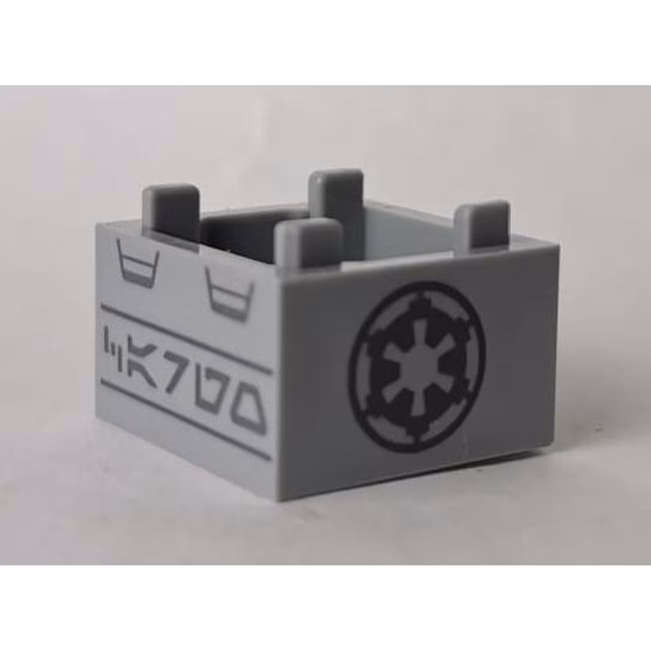 Деталь Lego 35700pb05 Container, Box 2 x 2 x 1 – Top Opening with Flat Inner Bottom with Dark Bluish Gray SW Imperial Logo and Aurebesh Characters ‘CARGO’ Pattern