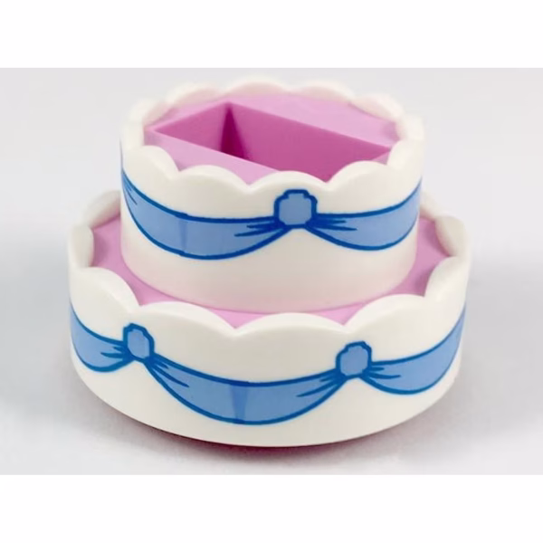 Деталь Lego 35860pb01 Cake, Double Layer with White Icing and Bright Light Blue Ribbons Pattern