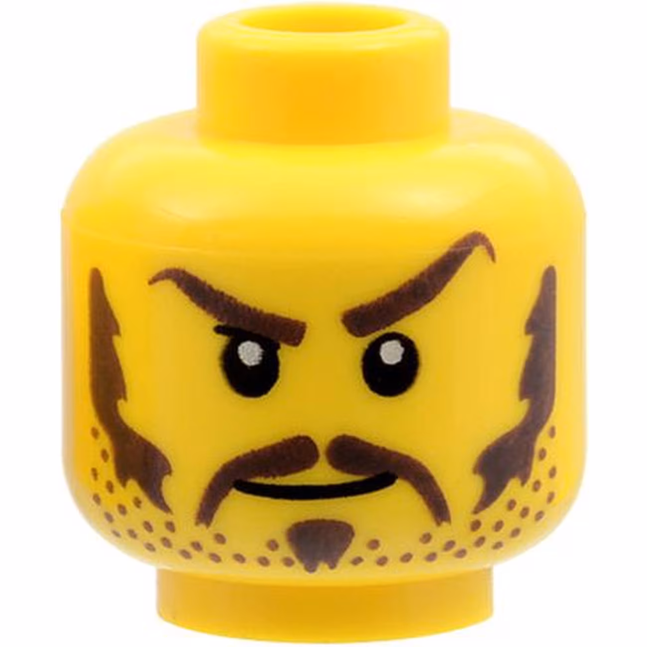 Деталь Lego 3626cpb0319 Minifigure, Head Dark Brown Eyebrows, Moustache, Soul Patch, Sideburns, and Stubble, Left Eyebrow Raised, Stern Pattern – Hollow Stud