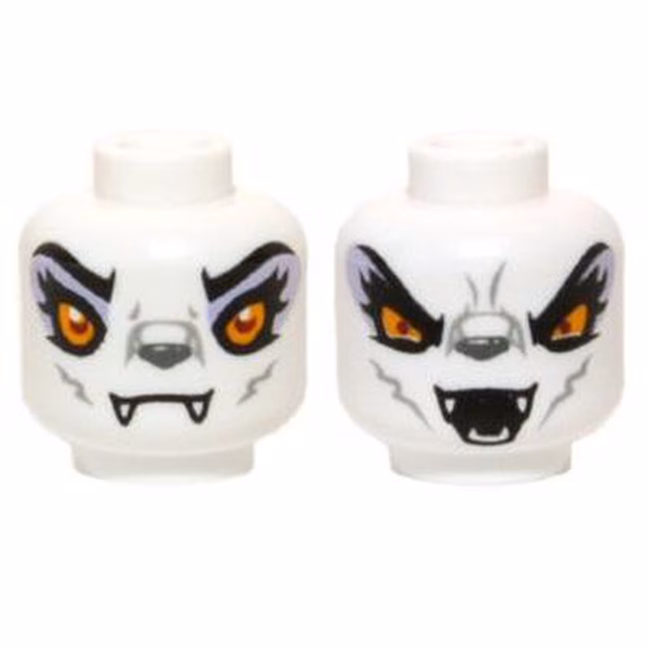 Деталь Lego 3626cpb0973 Minifigure, Head Dual Sided Alien Chima Wolf with Yellow Eyes and Lavender Eye Shadow, Closed Mouth / Open Mouth Pattern (Windra) – Hollow Stud