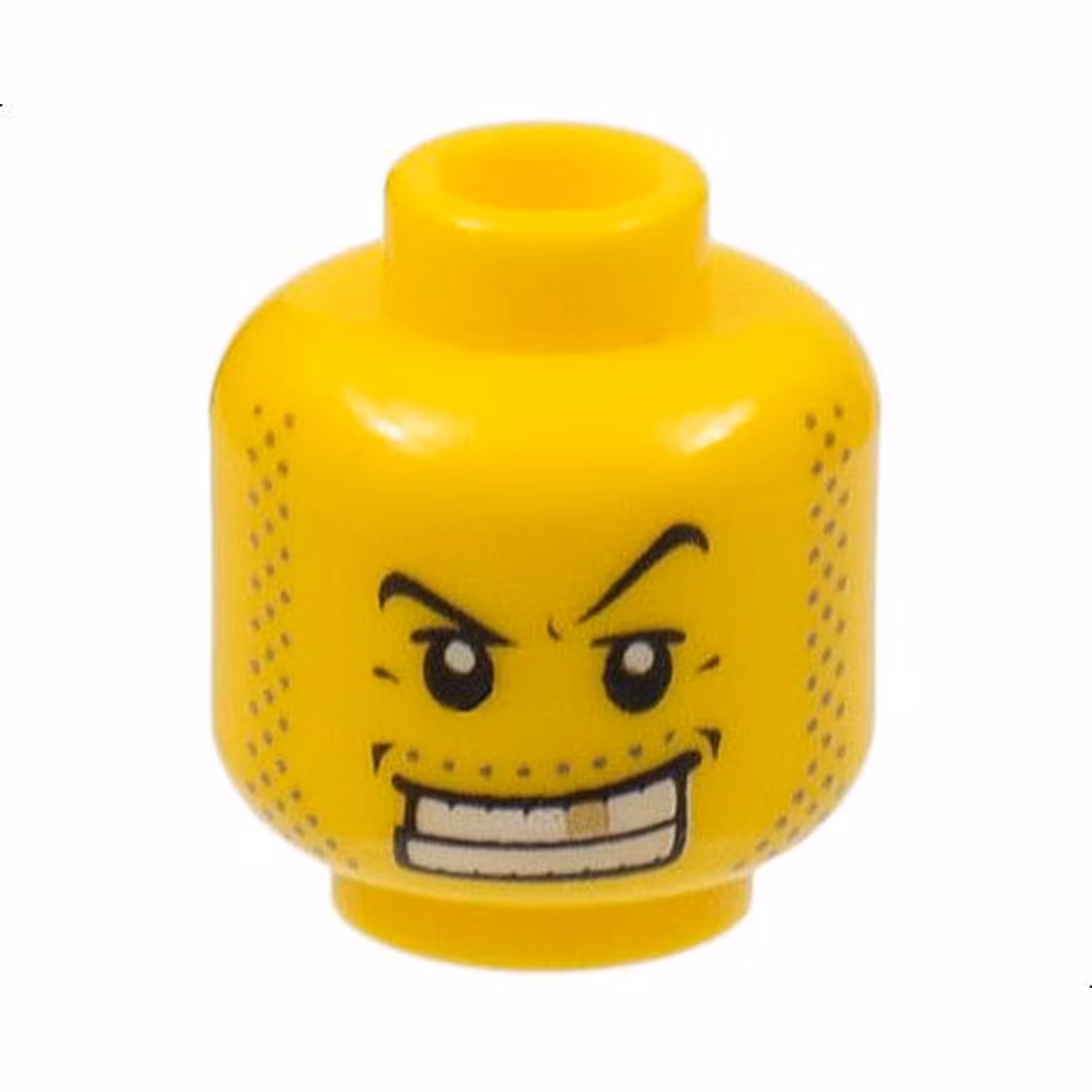 Деталь Lego 3626pb0302 Minifigure, Head Male Black Thin Eyebrows, Upper Eyelids, Moustache and Sideburns Stubble, Wide Open Mouth Smile with Teeth and Gold Tooth Pattern