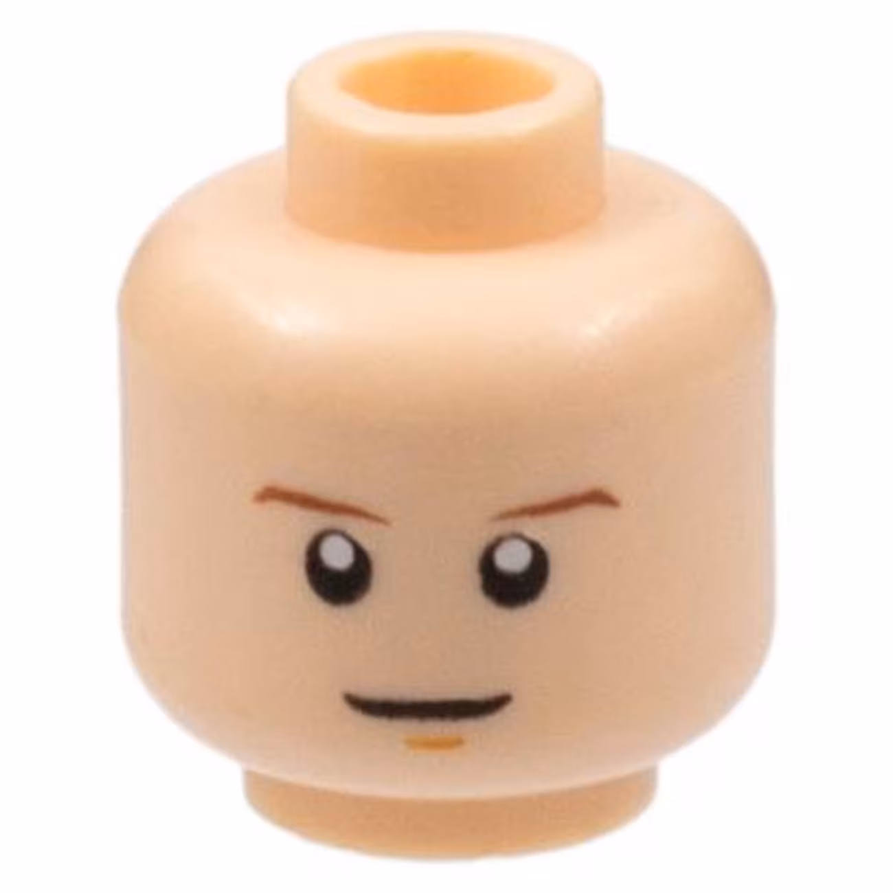 Деталь Lego 3626pb0408 Minifigure, Head Reddish Brown Thin Eyebrows, Medium Nougat Chin Dimple, Slight Grin Pattern