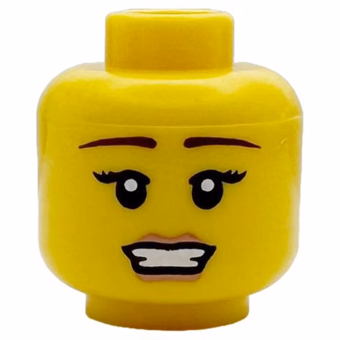 Деталь Lego 3626pb0439 Minifigure, Head Female Reddish Brown Eyebrows, Pink Lips, Open Mouth Pattern