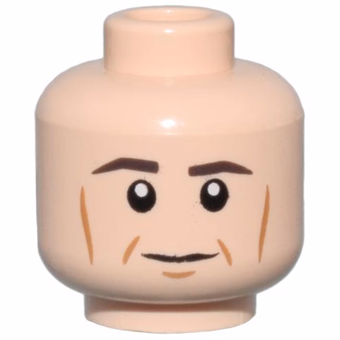 Деталь Lego 3626pb0563 Minifigure, Head Dark Brown Eyebrows, Medium Nougat Cheek Lines, Dimples and Chin Dimple, Neutral Pattern