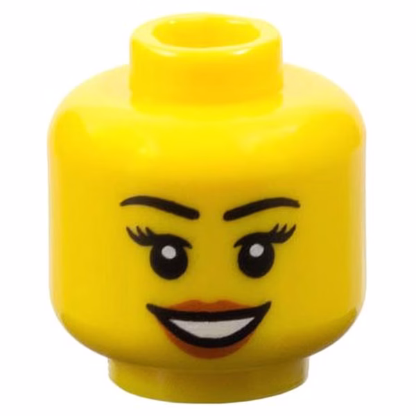 Деталь Lego 3626pb0633 Minifigure, Head Female Black Eyebrows and Eyelashes, Dark Orange Lips, Open Mouth Smile with Teeth Pattern