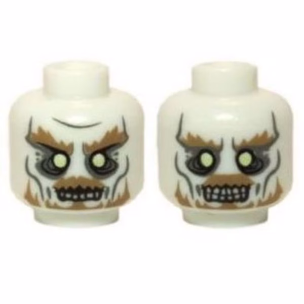Деталь Lego 3626pb0951 Minifigure, Head Dual Sided LotR Ghost with Glowing Eyes and Moustache, Bottom Teeth / Top and Bottom Teeth Pattern