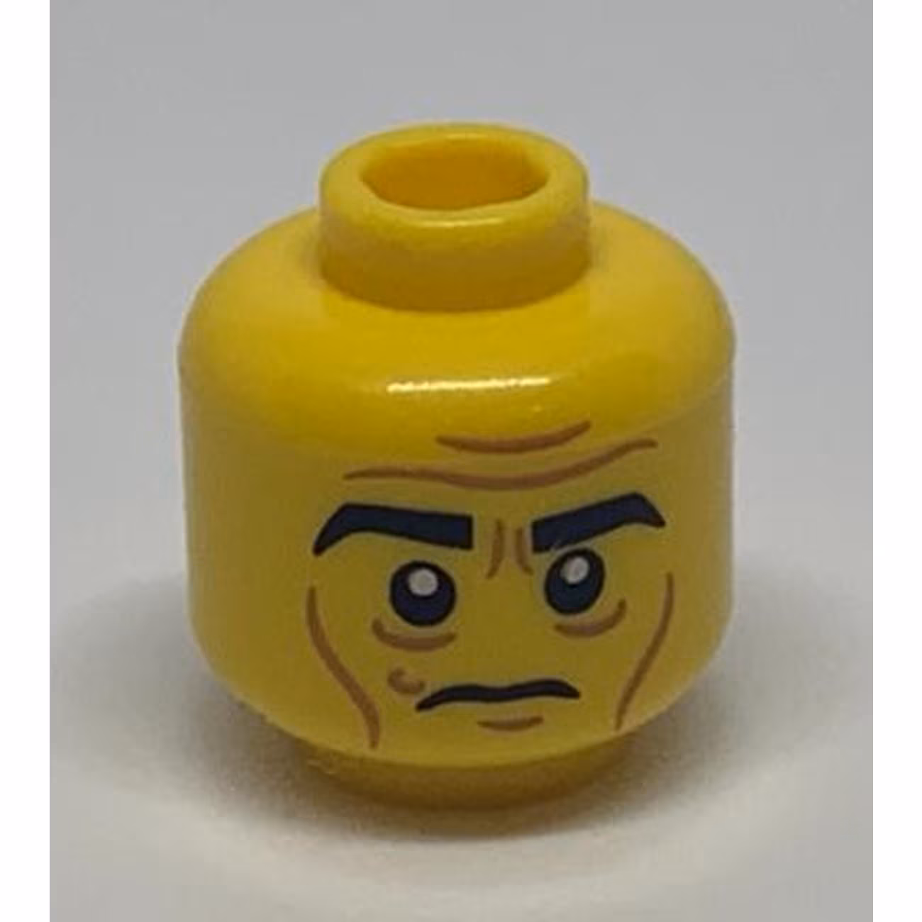 Деталь Lego 3626pb1049 Minifigure, Head Black Eyebrows, White Pupils, Wrinkles, Cheek Lines, Frown Pattern