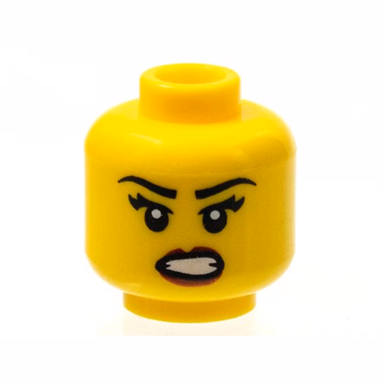 Деталь Lego 3626pb1239 Minifigure, Head Female Black Eyebrows, Eyelashes, Angry Open Mouth with Bared Teeth, Red Lips Pattern