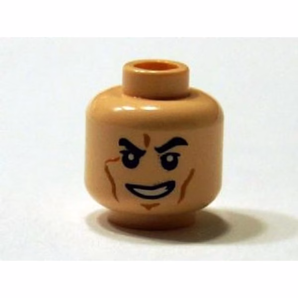 Деталь Lego 3626pb1246 Minifigure, Head Smile with Teeth, Arched Eyebrows, White Pupils and Scars Pattern (SW Boba Fett)