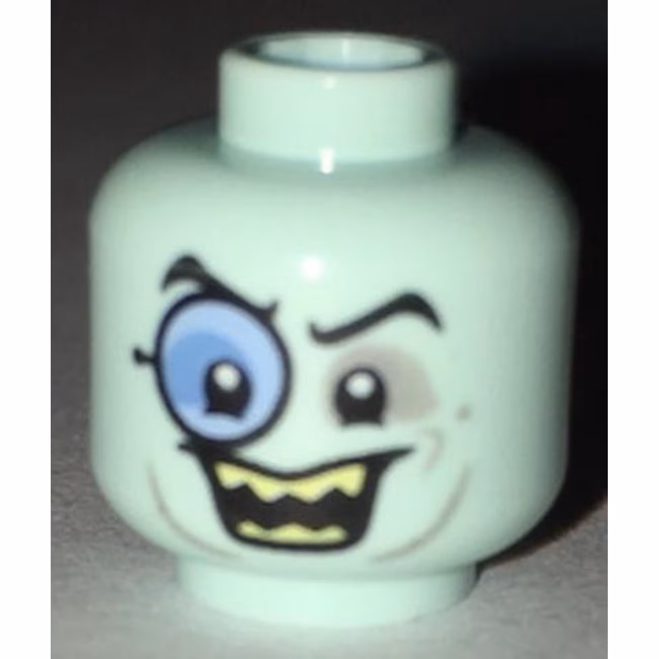 Деталь Lego 3626pb1697 Minifigure, Head Glasses with Blue Monocle, Black Eyebrows, Gray Around Eyes, Open Smile with Sharp Teeth Pattern