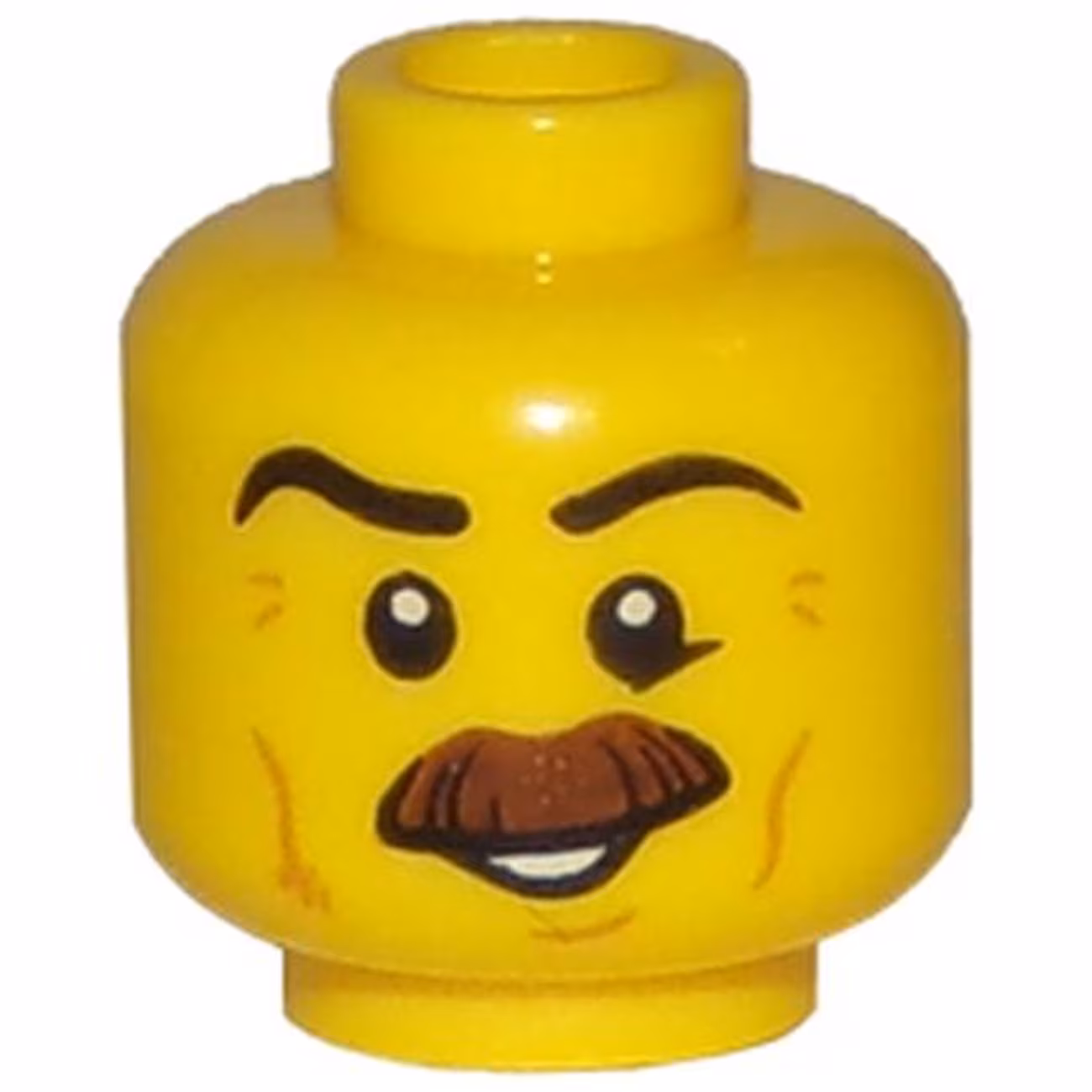 Деталь Lego 3626pb1748 Minifigure, Head Moustache Brown Bushy, Black Eyebrows, Cheek Lines, Smile, White Pupils Pattern