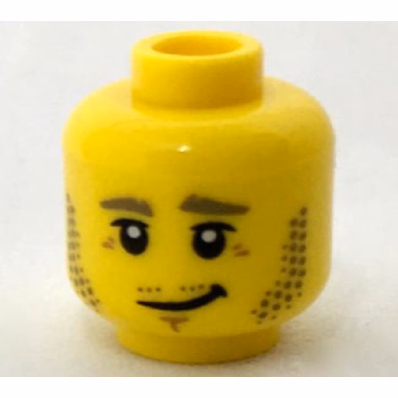 Деталь Lego 3626pb1812 Minifigure, Head Dark Tan Eyebrows and Stubble, Black Eyes, Crooked Grin Pattern