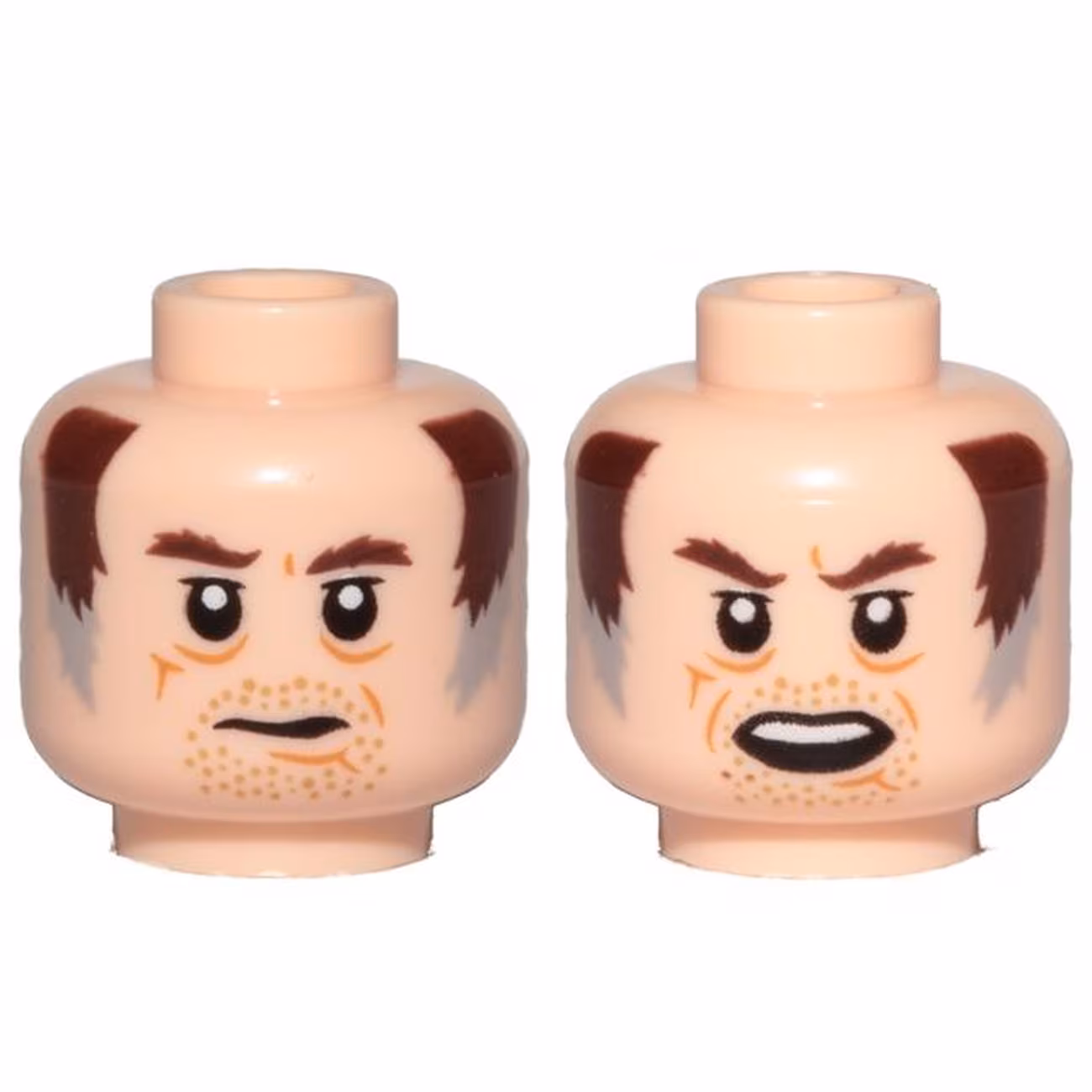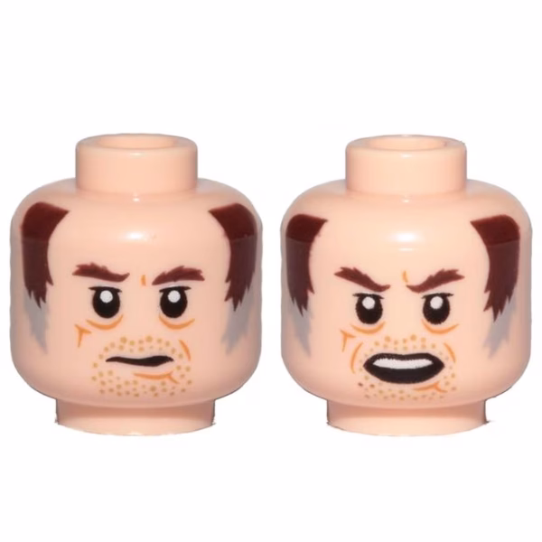 Деталь Lego 3626pb2151 Minifigure, Head Dual Sided Dark Brown Eyebrows, Brown and Gray Sideburns, Stubble, Mouth Closed / Open Pattern (SW Wuher)