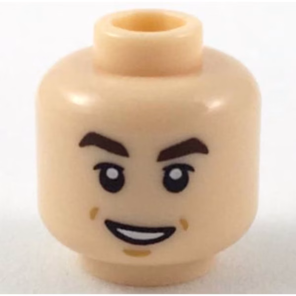 Деталь Lego 3626pb2187 Minifigure, Head Dark Brown Eyebrows, Small Lopsided Grin Pattern