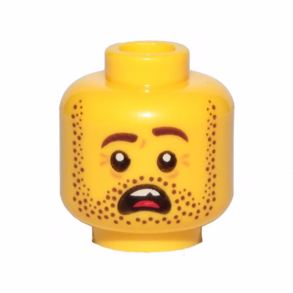 Деталь Lego 3626pb2456 Minifigure, Head Dark Brown Beard Stubble, Dark Brown Eyebrows, Left Raised, Open Mouth, Teeth and Tongue, Scared Pattern