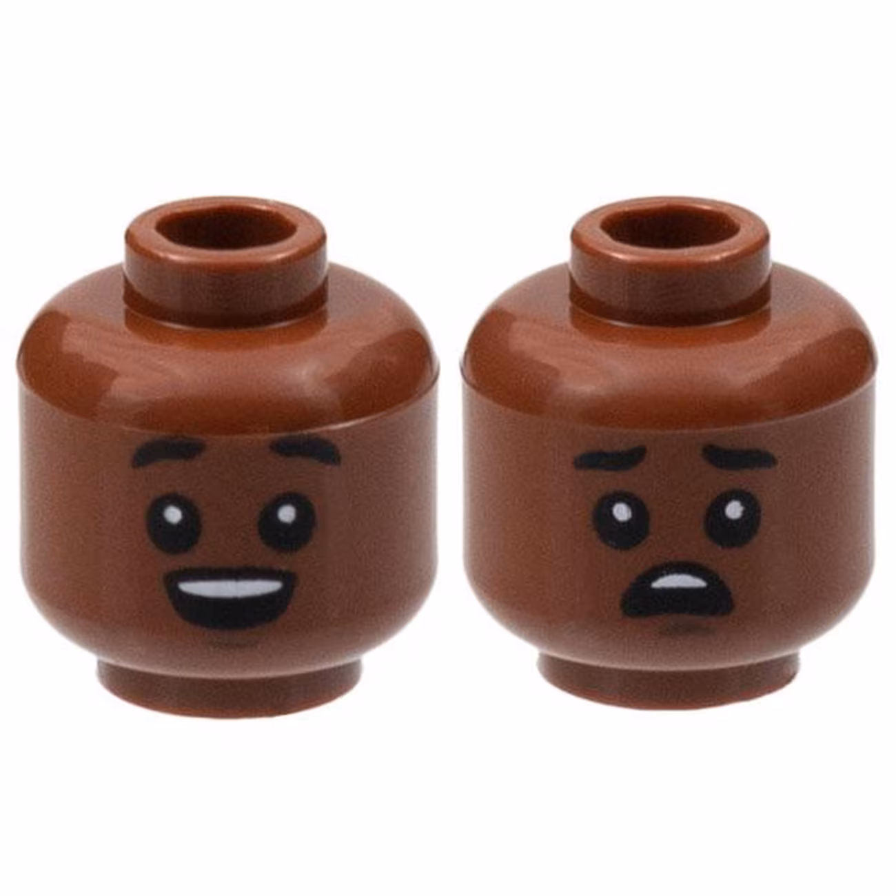 Деталь Lego 3626pb2997 Minifigure, Head Dual Sided, Black Eyebrows Raised and Eyes with White Pupils, Open Mouth / Worried Pattern