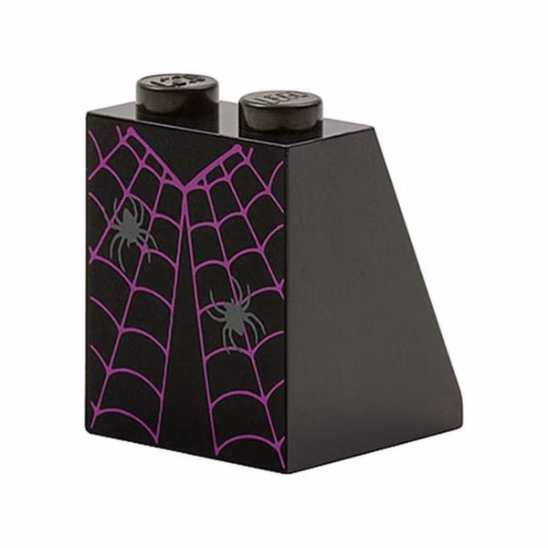 Деталь Lego 3678bpb114 Slope 65 2 x 2 x 2 with Bottom Tube with Minifigure Dress / Skirt / Robe, Magenta Spider Web, Dark Bluish Gray Spiders Pattern (BAM)