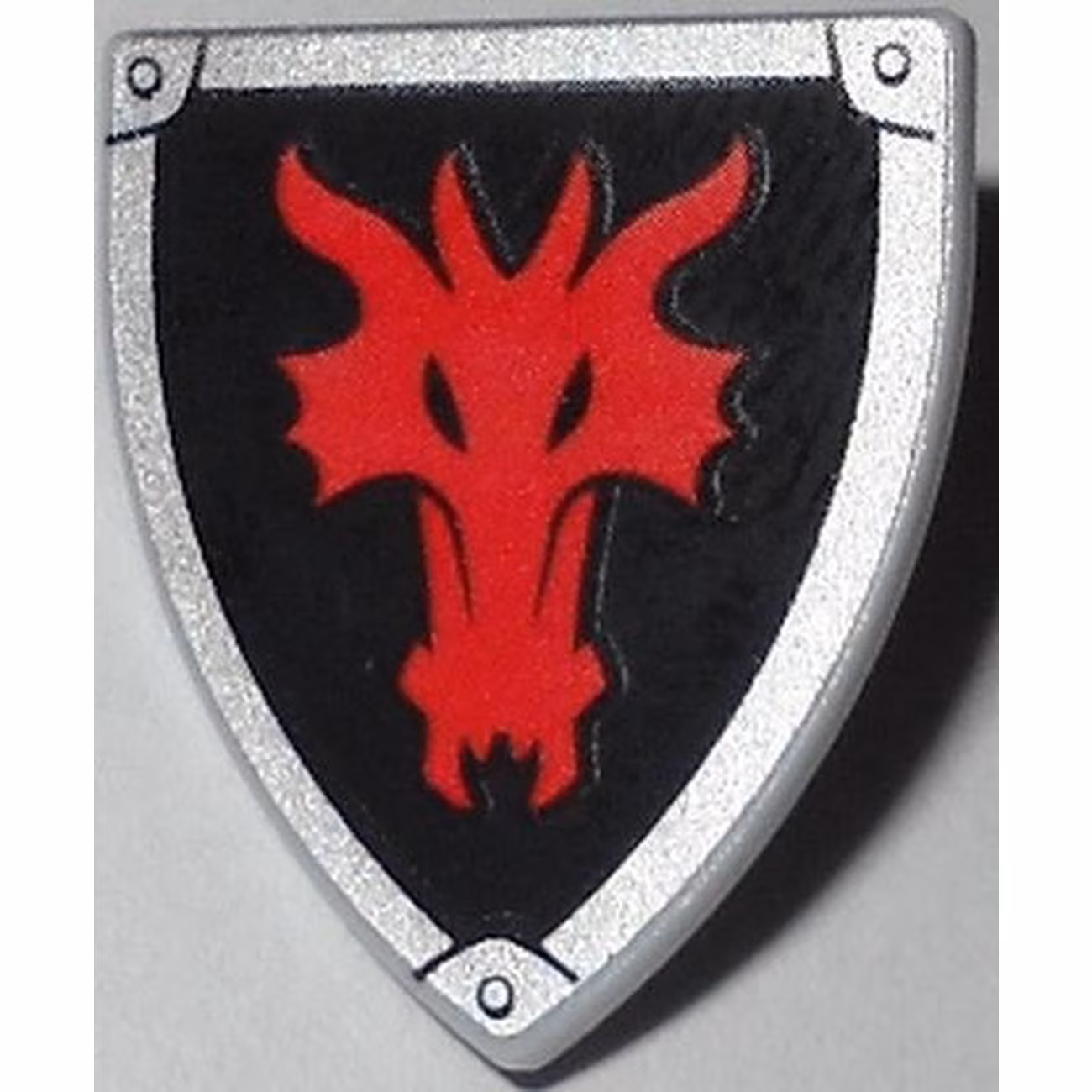 Купить Деталь Lego 3846pb035 Minifigure, Shield Triangular with Red Dragon Head on Black Background Pattern с быстрой доставкой по всей России. Категория детали: Minifigure, Shield. Цвет детали: Light Bluish Gray. В нашем интернет магазине вы найдете детали Лего пошутчно в большом количестве. Все детали Lego оригинальные.