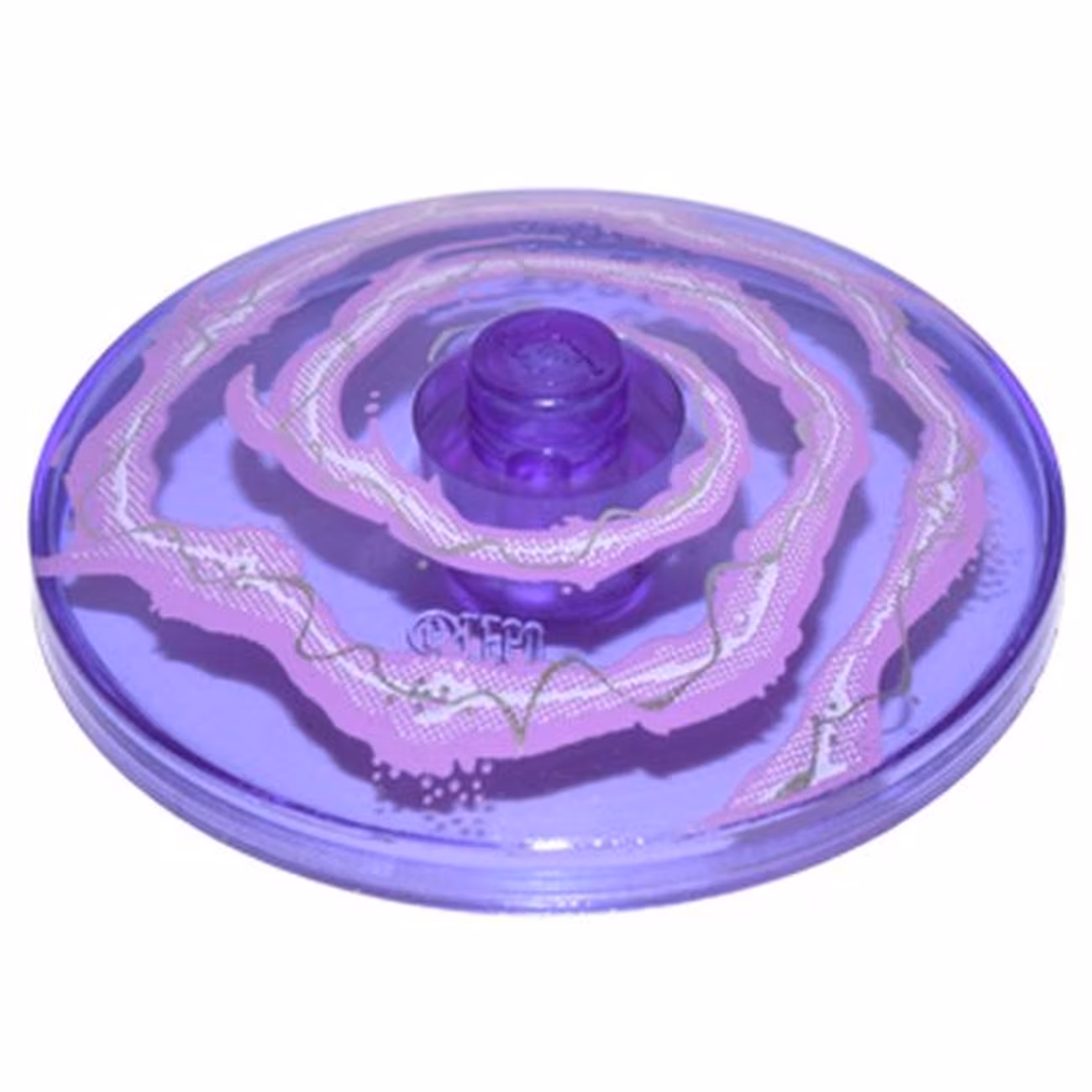 Деталь Lego 3960pb032 Dish 4 x 4 Inverted (Radar) with Solid Stud with White and Lavender Lightning Swirl Pattern