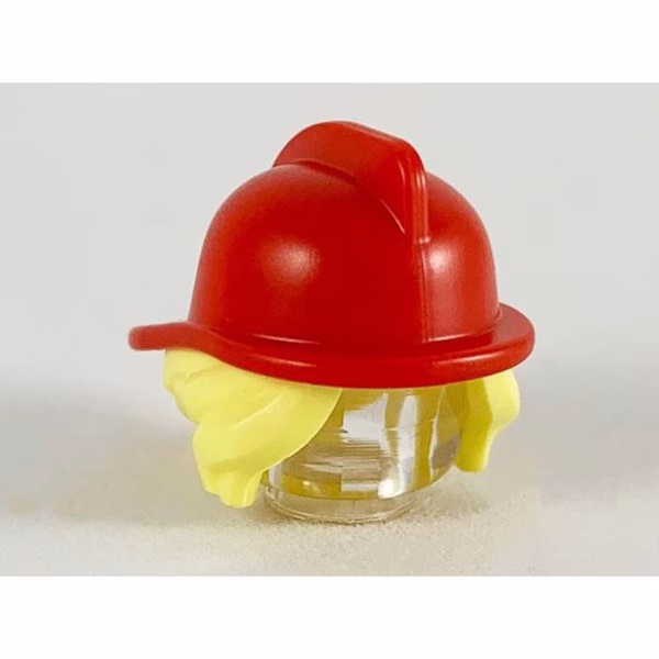 Деталь Lego 53117pb01 Minifigure, Hair Combo, Hair with Hat, Side Bangs and Bun with Molded Red Fire Helmet Pattern