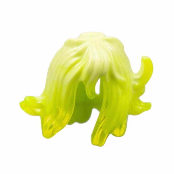 Деталь Lego 53801pb01 Minifigure, Hair Female Mid-Length Wavy with Side Spikes, Elongated Hole in Back and Marbled Trans-Neon Green Pattern