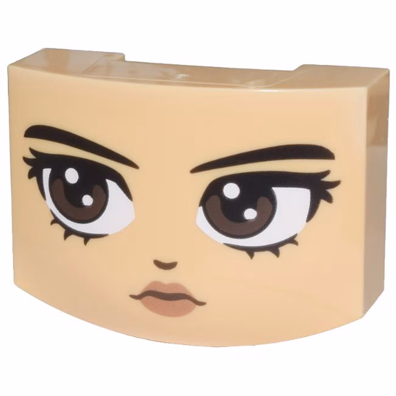 Деталь Lego 5787pb002 Wedge 3 x 4 x 1 1/3 Triple Curved No Studs with Black Eyebrows, Dark Brown Eyes Looking Right, Nose and Copper Lips Pattern (Wednesday Addams Face)